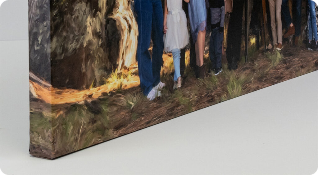 Our Mirror Wrap Canvas extends your image by mirroring the edges around the stretcher bars. This technique preserves your entire front-facing image while creating a natural-looking wrapped edge.